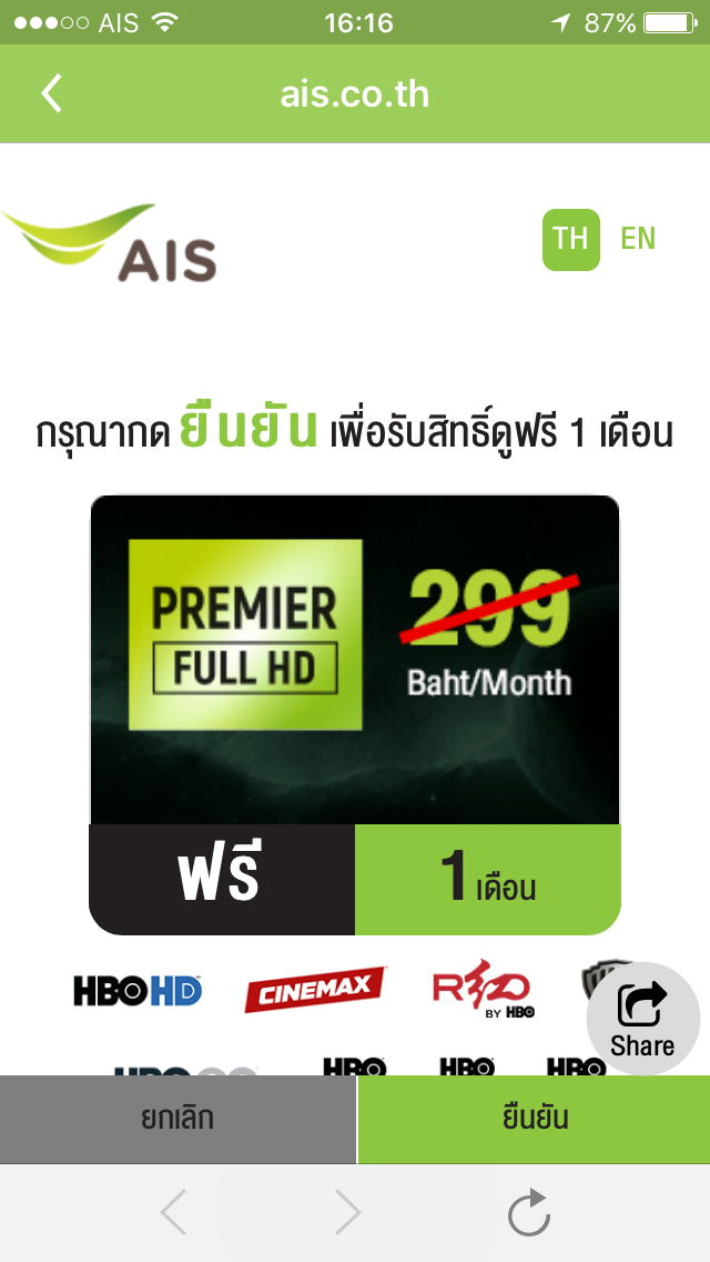ทีม ais pantip ต้องการยกเลิก premier full hd ที่ให้ดูฟรี 1เดือน