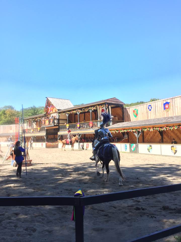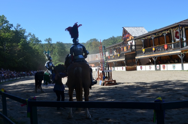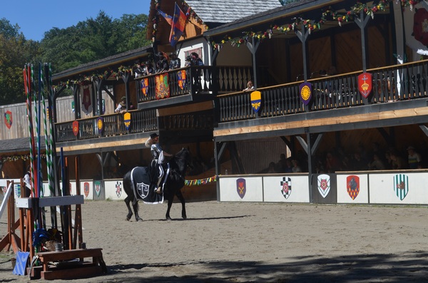 และชมการแสดงแรกที่เราเดินผ่านคือ The Jousters เป็นการแสดงของอัศวินขี่ม้าขาว (และดำ,น้ำตาล