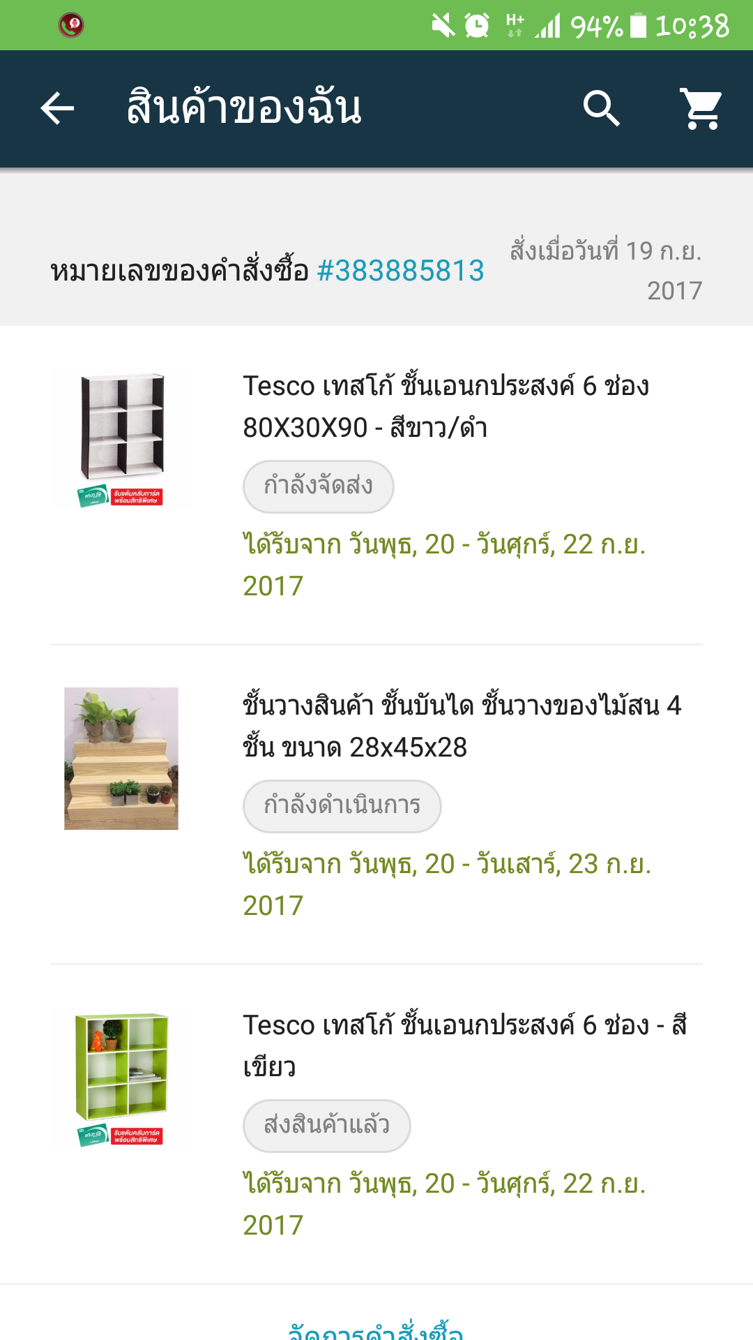 - ชิ้นที่3 กำหนดส่งของ 23/09/2017 นี่เลยกำหนดมา 3 วัน ของยังไม่มาส่งเลย