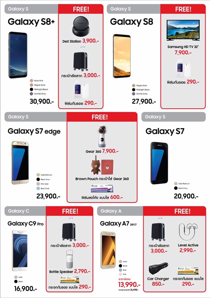 พอดีซื้อโปร AIS Hot Deal พอรวมส่วนลดแล้วได้ประมาณนี้ A5 2017 เหลือ 12,490 S7 เหลือ 14,900 ซื้อใน TME ก็มีของแถมจากซัมซุงต่างหากอีก ราคาต่างกันเล็กน้อย เลือกตัวไ