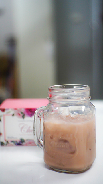 พอดีว่า ไปได้ ชานม ยี่ห้อหนึ่งมาทาน ซึ่งเคลมว่าช่วยเรื่องระบบขับถ่าย ช่วยเรื่องผิวพรรณ ดีท๊อกซ์
