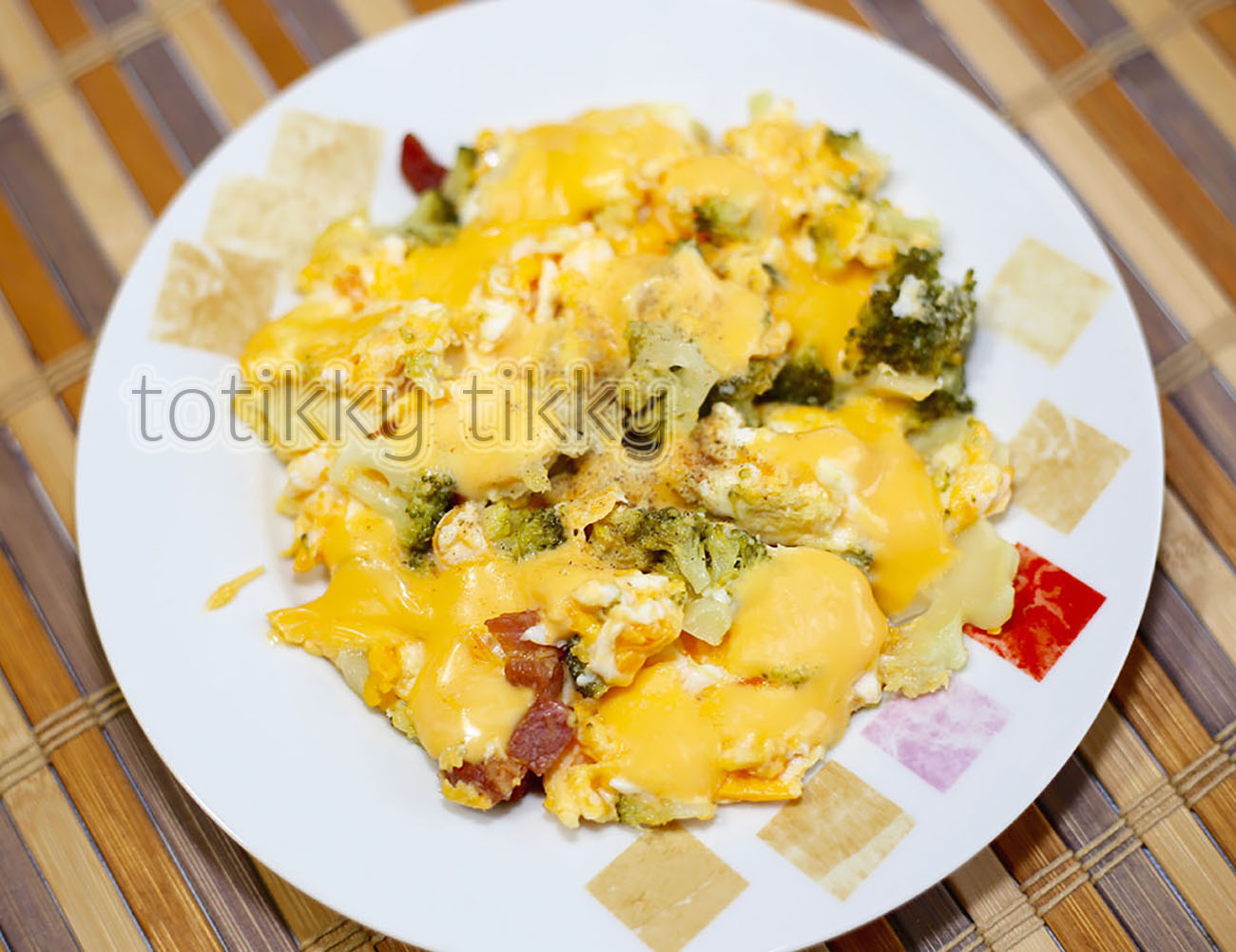 สแกมเบิ้ล เอ้กใส่ชีสใส่บล็อกโคลี่ใส่เบคอน