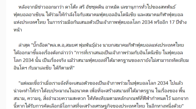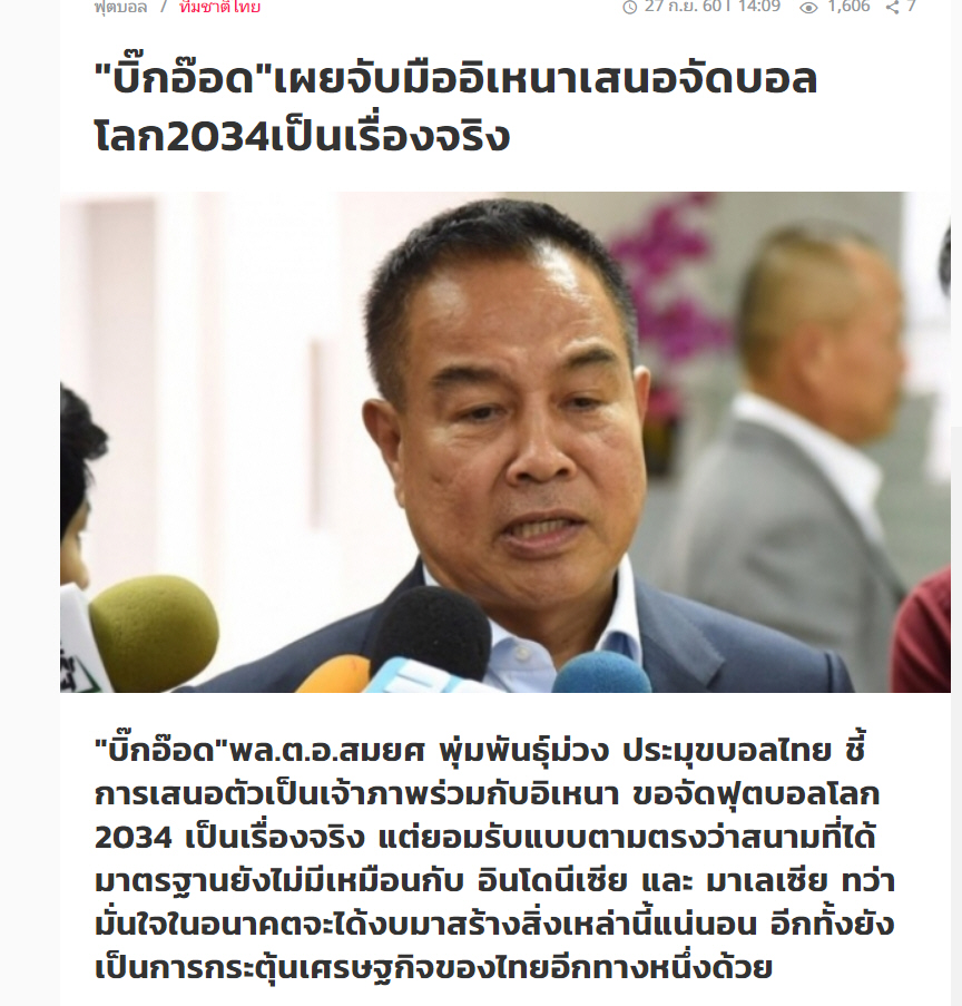 .........."บิ๊กอ๊อด"เผยจับมืออิเหนาเสนอจัดบอลโลก2034เป็นเรื่องจริง...........