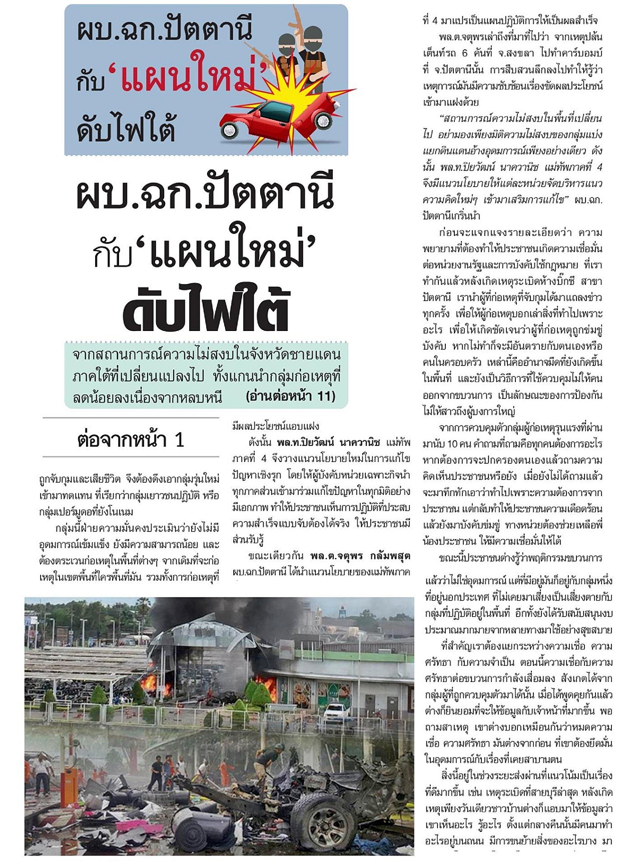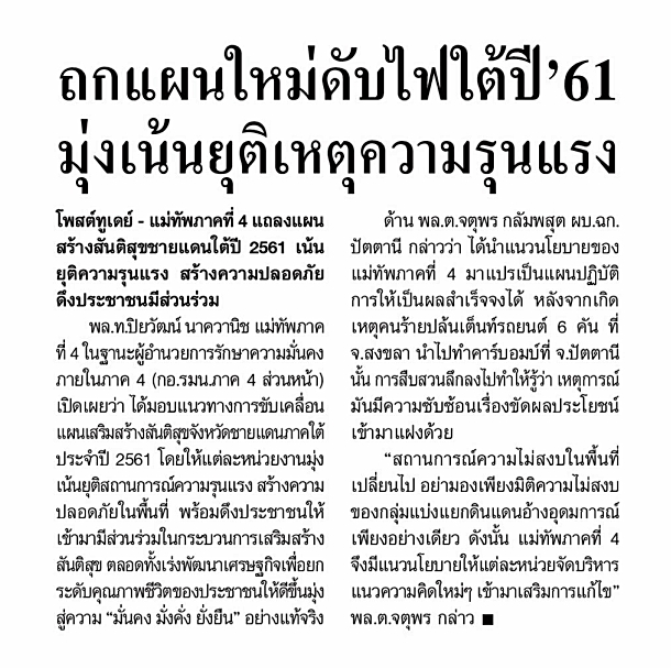 ถกแผนใหม่ ดับไฟใต้ ปี'61 มุ่งเน้นยุติเหตุความรุนแรง - ผบ.ฉก.ปัตตานี กับ 'แผนใหม่' ดับไฟใต้