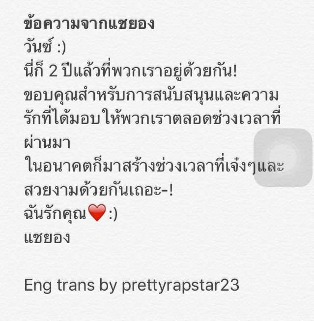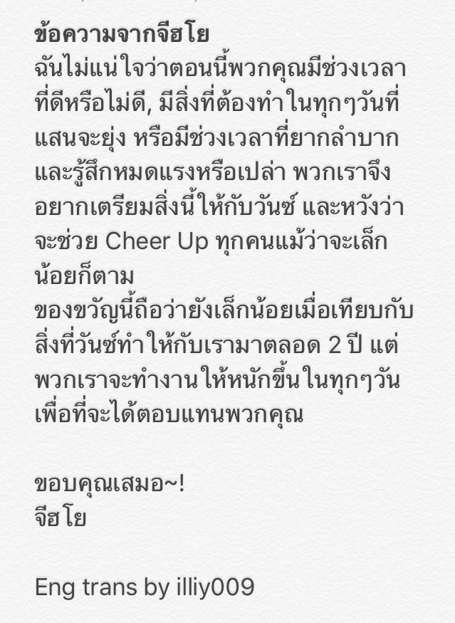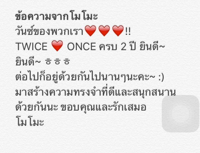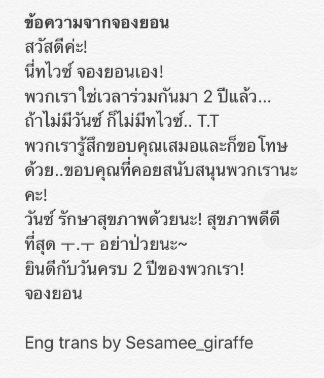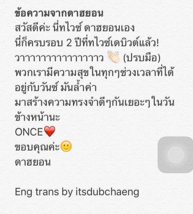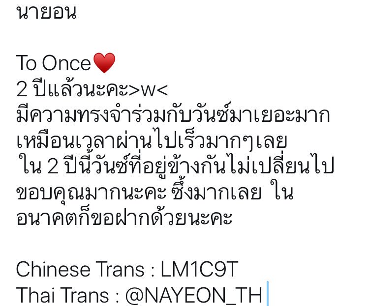 ทไวซ์เขียนข้อความถึงวันซ์ดังนี้