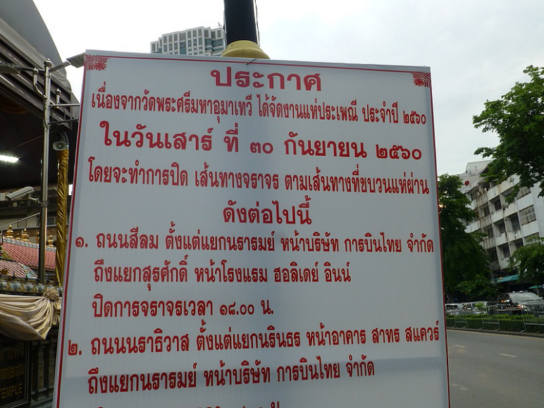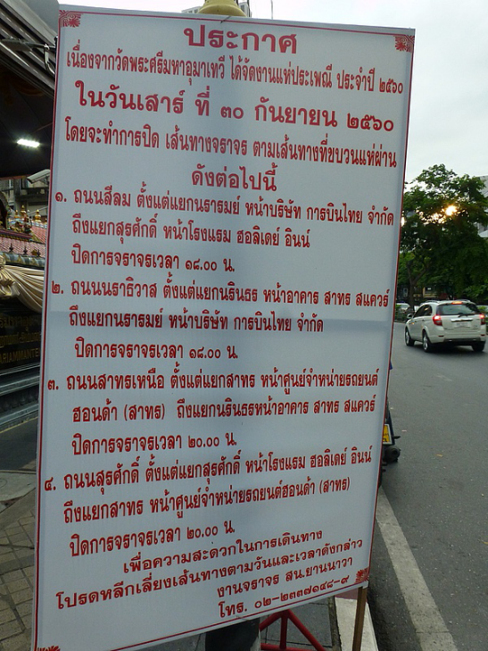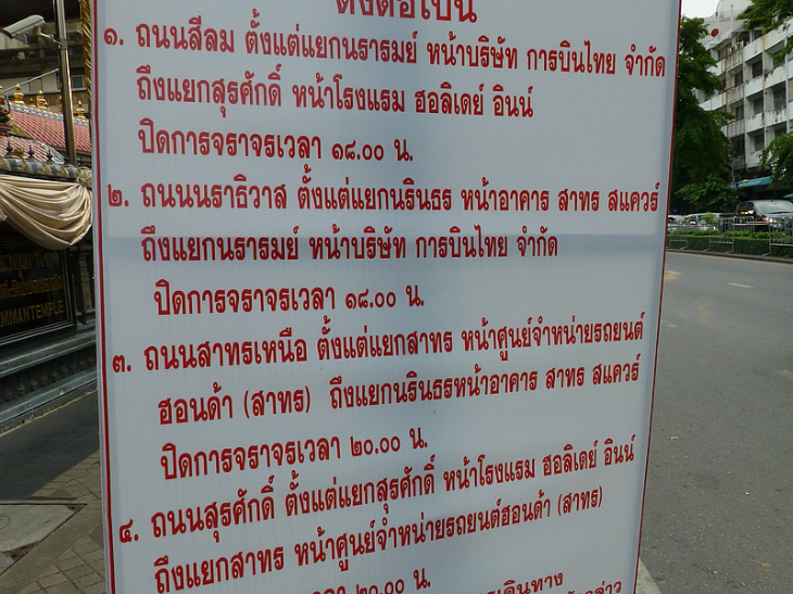 ป้ายประกาศปิดการจราจรสีลม