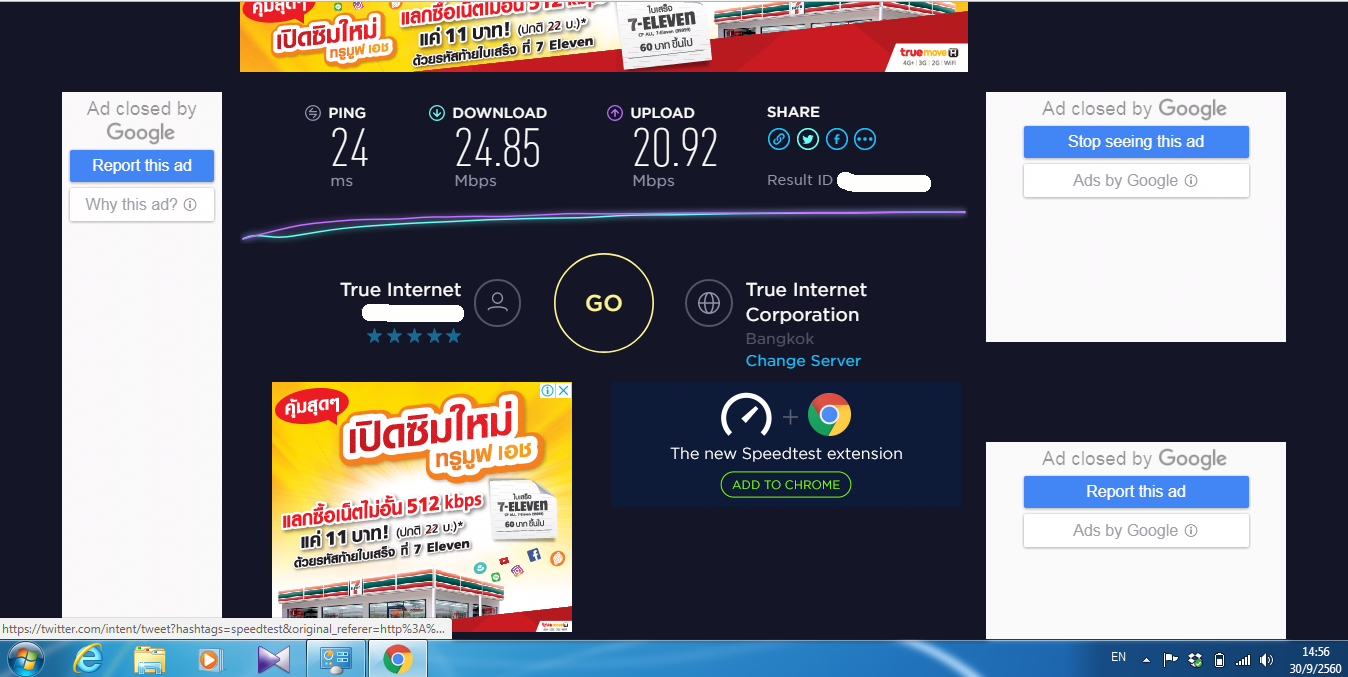 ที่ Test หลายๆครั้ง และหลายแหล่ง เพื่อความชัวร์ ก็พบว่า Internet ที่สามารถใช้การได้จริง Download ไม่ถึง 30MB เลยค่ะ (ในส่วนของ Upload นี่ปกติเลยค่ะ)