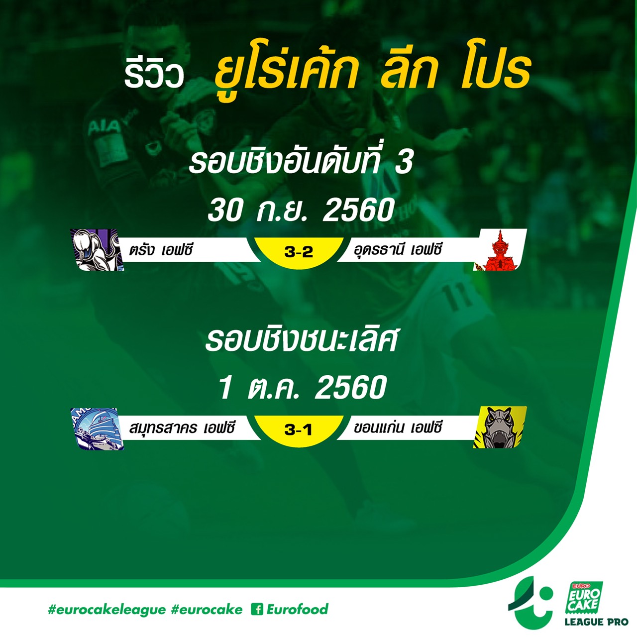 ขอบคุณข้อมูลจาก ยูโร่เค้ก ลีก ผู้สนับสนุนฟุตบอล ยูโร่เค้ก ลีก โปร และ ยูโร่เค้ก ลีก อย่างเป็นทางการ