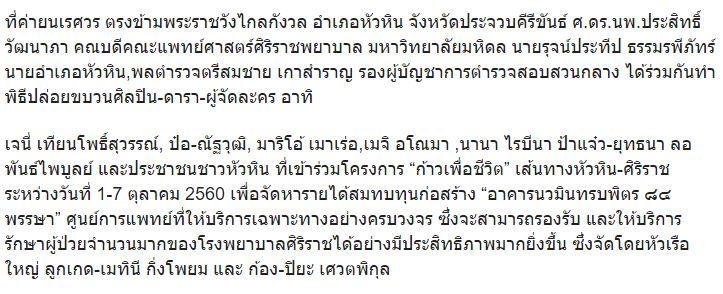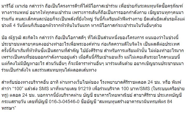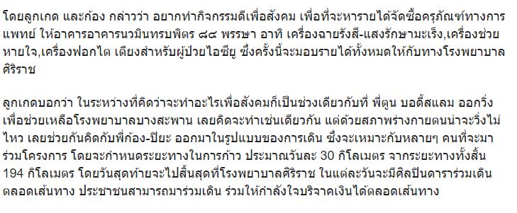 เหล่าคนบันเทิงจับมือกันร่วมกิจกรรมเดินการกุศลเพื่อรับบริจาค รายได้ทั้งหมดสมทบทุน โครงการระดมทุนเพื่อก่อสร้างอาคาร และจัดซื้อครุภัณฑ์ทางการแพทย์ อาคารนวมินทรบพิตร ๘๔ พรรษา โรงพยาบาลศิริราชค่ะ