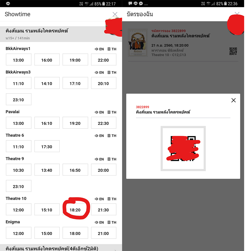 ก่อนหน้านี้ผมซื้อตั๋วหนังเรื่อง Kingsman 2 ในวันอังคาร ที่ 19 กันยายน รอบวัน พฤ ที่ 21 กันยายน