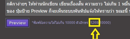 กติกาง่ายๆ ให้ท่านนักเขียน เขียนเรื่องสั้น ความยาว อย่างน้อย 3 พันอักษรขึ้นไป จนถึง 1 หมื่นอักษร (ดูได้เมื่อตั้งกระทู้ เช่นผมพิมพ์ถึงตรงนี้ เมื่อดูทางขวามือของป้าย Preview ก็จะเห็นระบบพันทิปแจ้งให้ทราบว่าผมพิมพ์มาได้ถึง 1269 อักษรแล้ว