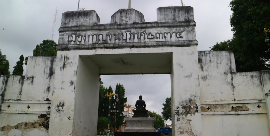 หลังจากถึงสถานี เราก็ได้โทรไปหาพี่คนที่มารับ พี่เขาบอกว่าเป็นลูกของคุณลุง วันนี้คุณลุงพาคนฝรั่งไปเที่ยวตั้งแต่เช้าแล้ว เราก็โอเคขึ้นรถ ในรถ มีเราสองคน ไกด์และ พี่ที่มาพักอีกสองคน รถมุ่งหน้าไปที่แรกคือประตูเมืองกาญจน์(1) พี่เขาพาไปไหว้ศาลหลักเมือง(2) ตอนเรามามันเป็นช่วงหน้าฝน ท้องฟ้ามืดไม่มาก แต่โชคดีฝนไม่ตก