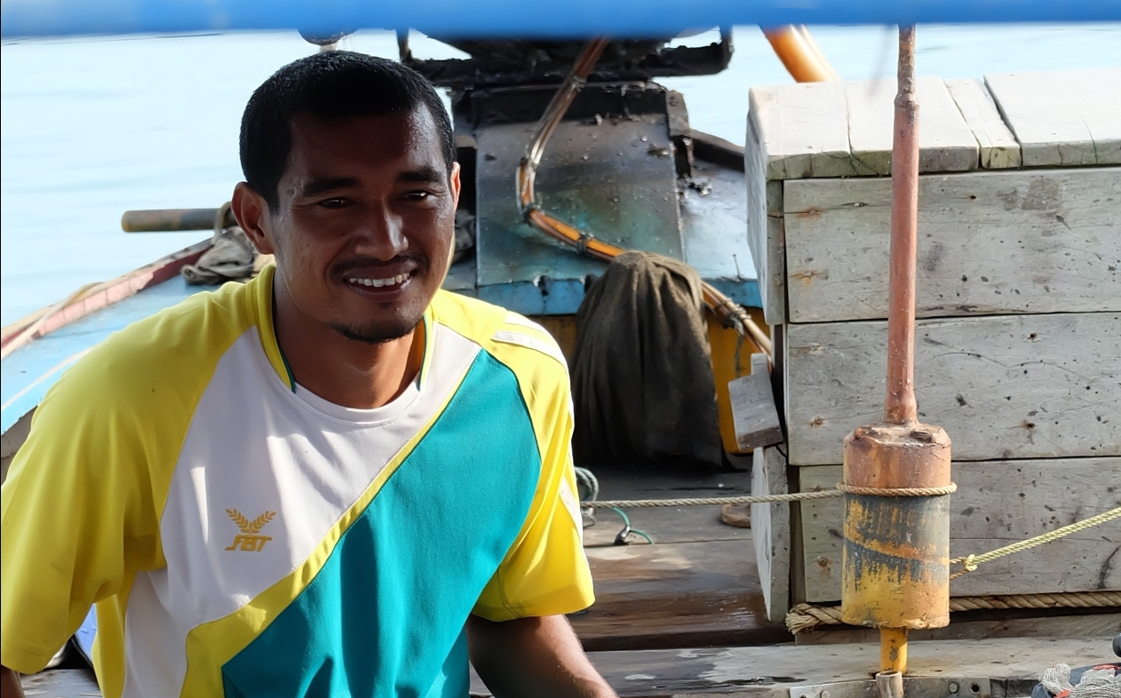 ถึงเวลาลงเรือแล้วค่ะ คนขับเรือของเราชื่อบังวุฒิ และไกด์ของเราชื่อบังเปี๊ยกค่ะ ตามรูปเลย แรก ๆ นี่ยังเงียบ ๆ เกร็ง ๆ พอซักพักนี่มุขเริ่มมา