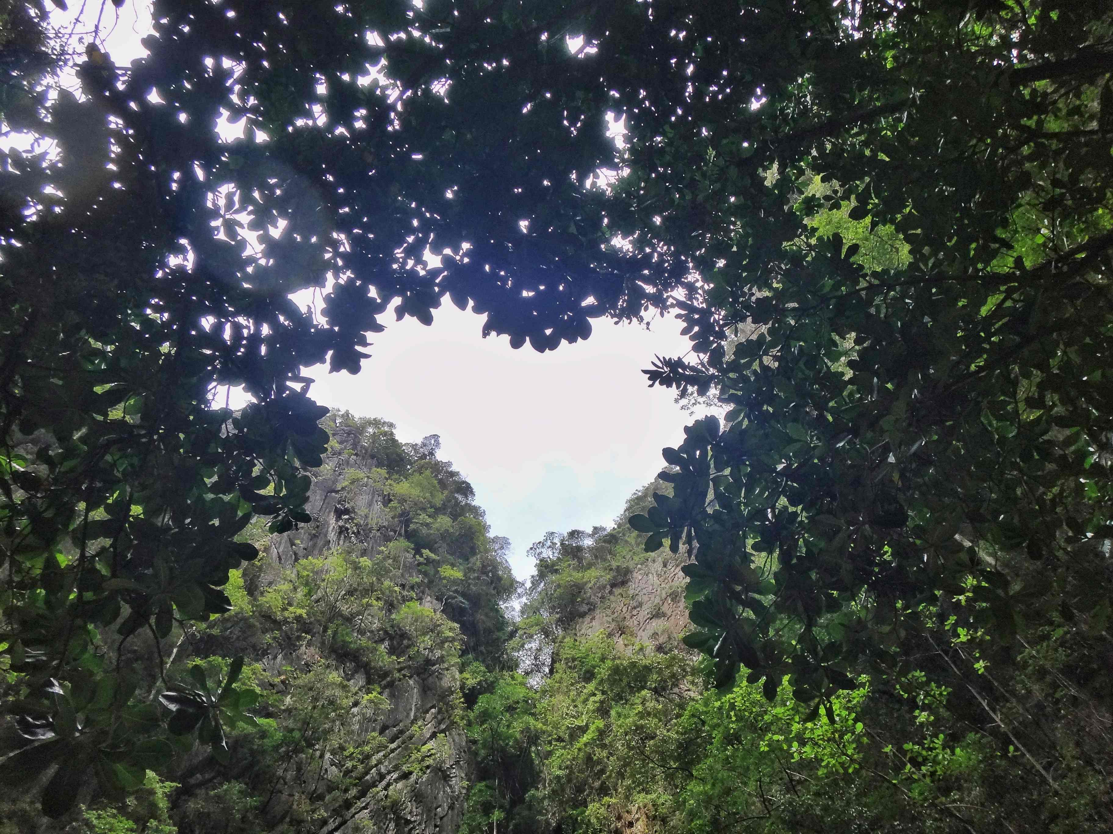 มาต่อ ค่ะ มาถึงอันซีนไทยแลนด์ ถ้ำมรกตค่ะ อันนี้ต้องรอดูจังหวะเข้า- ออกค่ะ เพราะมันจะมีช่วงที่ก่อนจะทะลุด้านใน หากมีคลื่นเข้ามา ก็จะทำให้เรากระแทกเพดานถ้ำได้ค่ะ (ซึ่งเจ็บนิดหน่อย ไม่มากค่ะ โดนเองกับตัว 555) ตอนเข้าไป บังวุฒิให้เราต่อแถวเรียงเดี่ยวค่ะ โดยจับเสื้อชูชีพ (ตรงแขนของเพื่อนข้างหน้า) และว่ายตามๆกันไป โดยขาก็ปั่นจักรยานกันค่ะช่วยกันสุดฤทธิ์ เพราะบางจังหวะมีคลื่นพัดเราถอยกลับมา ก็ต้องปั่นๆๆกันต่อได้ใช้แรงสนุกดีค่ะ ระหว่างทางเราเห็นคนว่ายสวนออกมา เราคิดกันในใจจะรีบว่ายออกมากันทำไมนักหนา มันทำให้แรงที่เค้าว่ายกันออกมา น้ำมันพัดเราถอยกลับมา ซึ่งทำให้เราต้องใช้แรงมากขึ้นด้วย และก่อนถึงปากถ้ำด้านใน เพดานมันจะเตี้ยนิดนึงค่ะ ตรงจุดนี้แหละที่ว่าต้องรีบว่ายให้พ้นเพราะหากคลื่นมาตอนนี้ จะทำให้ตัวเราลอยขึ้นไป และหัวเราจะกระแทกเพดานได้ ซึ่งๆๆๆคลื่นมันก็มาตอนเราถึงจุดนั้นพอดีค่ะ โชคดีมว้ากกก ซึ่งก่อนคลื่นถึงตัวเราไกด์ได้บอกเราไว้แล้วค่ะว่าถ้ามีคลื่น ให้เราก้มหัวลงไปในน้ำให้เยอะที่สุด ซึ่งเราว่าเราก็ก้มเยอะแล้วนะ ยังโดนจนได้ค่ะ แต่ก็ไม่เป็นไรค่ะ เจ็บนิด ๆ เจ็บเหมือนมดกันนี้ดดดเดียว (บ่งบอกอายุเลยทีเดียวเพลงนี้ 55) พอเข้าไปได้ก็ถึงเวลาถ่ายรูปค่ะ ไกด์ของเรารู้จุดค่ะ จุดที่ถ่ายย้อนขึ้นไปจะเห็นเป็นหัวใจเลย ซึ่งมุมนี้ไม่มีคนมาถ่ายเลย มีแต่พวกเรานี่แหละ เราเลยคิดเอาเองว่าไม่น่าจะมีคนรู้กันเท่าไหร่