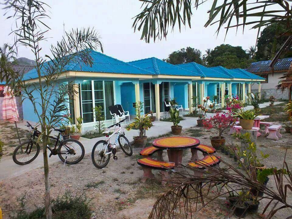 พอมาถึงท่าเรือที่เกาะมุกก็ประมาณ 5 โมงเย็นแล้ว ก็มีรถแท๊กซี่ประจำเกาะมารับ ไปส่งถึงที่พักเลย ซึ่งกระเป๋าเสื้อผ้าของพวกเรารออยู่หน้าบ้านพักเราเรียบร้อยแล้ว และนี่คือบ้านพักของเราค่ะ