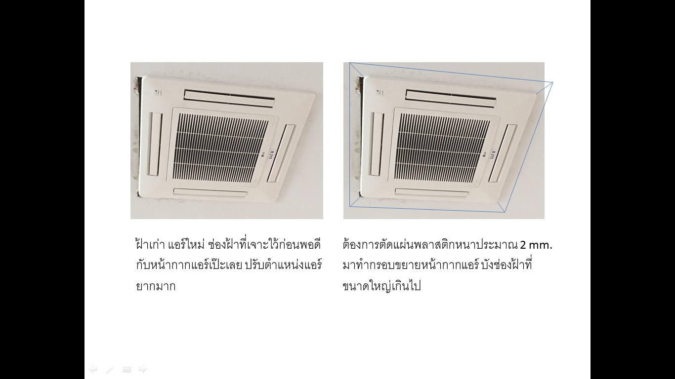 ตัดเรื่องการซ่อมฝ้าไปเลยเพราะเรื่องฝุ่นและการปิดพื้นที่ทำงาน / การเสริมหน้ากากสามารถถอดออกไปทำนอกพื้นที่ได้