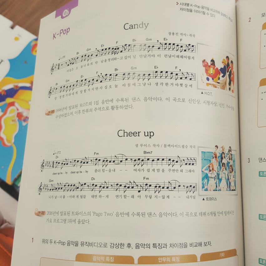 เพลง"Cheer Up" ของ TWICE และเพลง "Candy" ของวงH.O.T เป็นส่วนหนึ่งของหลักสูตรสำหรับการเรียนหลักสูตรดนตรีที่เกาหลี