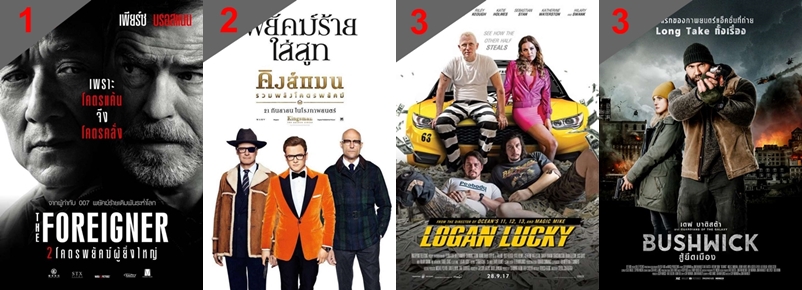 อันดับ 1 : The Foreigner หนังแอ็คชั่นที่ไม่บู๊แหลก แต่เป็นแนวสืบสวนหารายชื่อผู้ก่อนการร้ายที่วางระเบิดกับนักการเมืองเพื่อแก้แค้นให้กับลูกสาวของตนเอง หนังมีความซับซ้อนในประเด็นทางการเมืองภายใน ทำให้คนดูเข้าใจยาก รวมถึงการฉากแอ็คชั่นไล่ล่าที่ไม่ได้หวือหวามาก แต่ก็คือว่าเป็นหนังที่ดูได้เพลินๆ เรื่องหนึ่ง