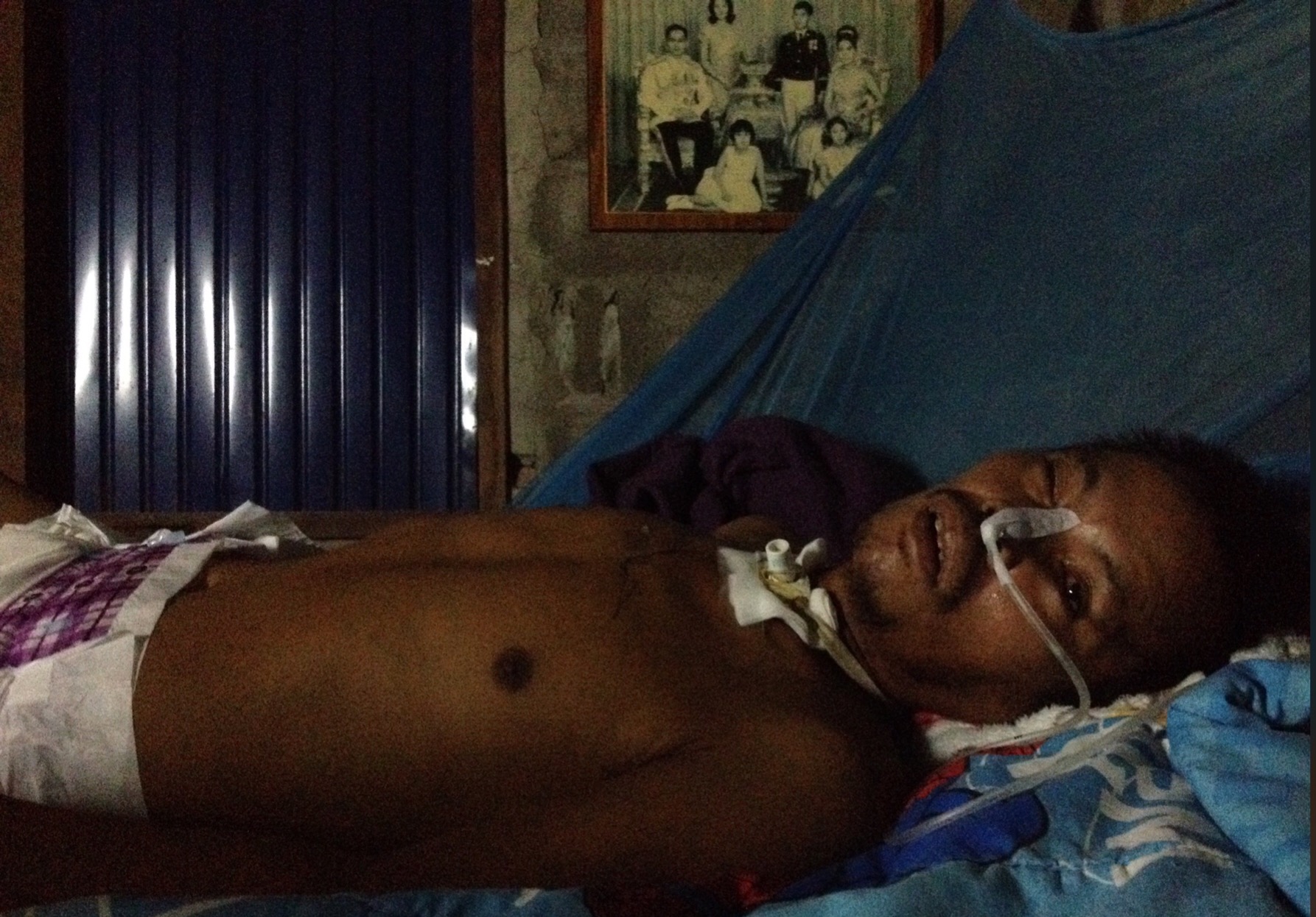 สภาพของพ่อผมตอนนี้ทุลักทุเลมาก กล่าวคือแขนขาแข็งทื่อไปหมด นอนตาเหลือกตาค้าง ตาดำทั้ง 2 ข้างเหลือบมาไปคนละทิศละทาง สภาพเป็นเหมือนผักปลา พูดง่าย ๆ คือตายทั้งเป็น