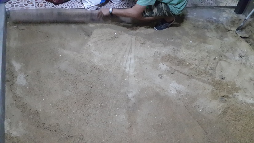 วิธีแรกเลยเราต้องการปรับหน้าดินก่อน กำหนดพื้นที่ ที่จะลงอิฐมอญ