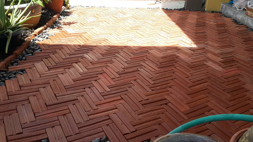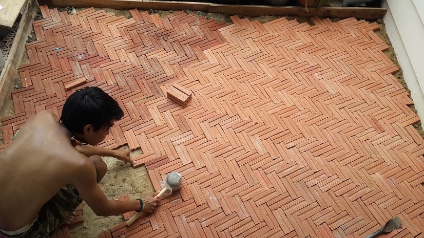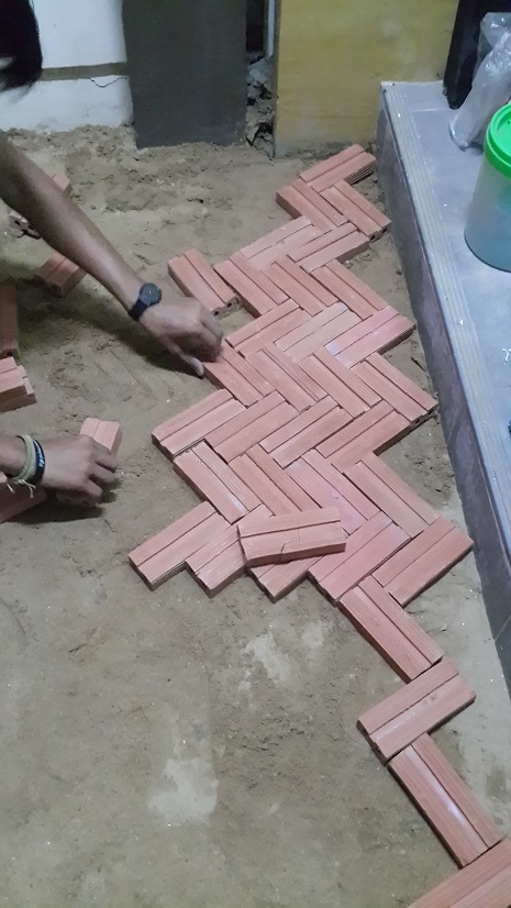 แต่แฟนอยากลองปูพื้นด้วยอิฐมอญ เลยไม่ขัด ความสุขของนาง ก็ไปเลยจ้า เลยออกมาเป็นแบบนี้