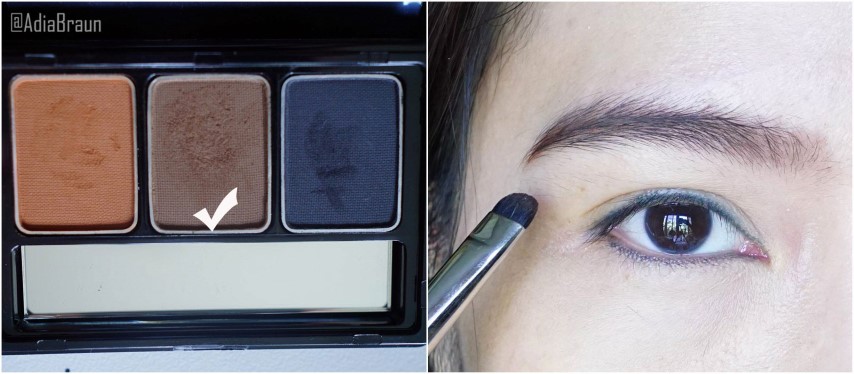 ทาอายแชโดว์สีน้ำตาลเข้มแบบแมทที่หางตาแล้วเกลี่ยให้เนียน