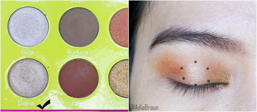 ใช้อายแชโดว์สีทองแบบมีชิมเมอร์ทาที่เปลือกตา (Juvia's Place Masquerade palette)