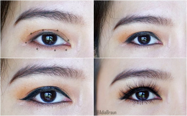 ใช้อายไลเนอร์ปากกาสีดำกรีดให้หางแหลมนิดหน่อย  (อายไลเนอร์ปากกา Heroine Make eyeliner)