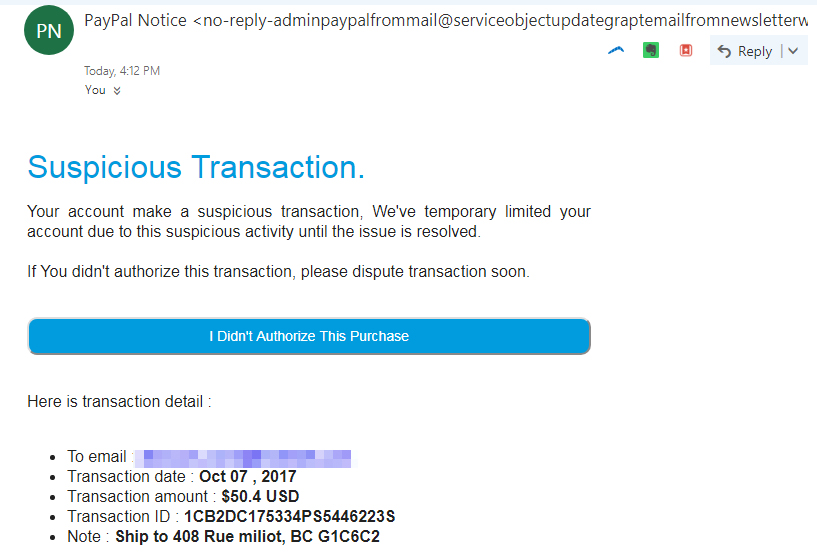 เป็นครั้งแรกในชีวิตที่โดน Phishing มี e-mail แปลกๆมาบอกว่ามีการใช้จ่ายผ่านระบบ paypal 50$ 2 ครั้งตอนตี 5 ถ้าไม่ใช่ ให้กรอกรายละเอียดต่างๆผ่าน URL ที่แนบมาให้ ตอนแรกก็ตกใจ login เข้าไป เห็นว่ามีการใช้งานที่สงขลา แต่เริ่มสงส้ยเพราะมันให้กรอกรายละเอียดเพิ่มเติม ทั้งวันเดือนปีเกิดและเบอร์โทรศัพท์ จนกระทั้งมาถึงข้อมูลบัตรเครดิต ซึ่งเริ่มไม่แน่ใจตั้งแต่เจอ URL ยาวๆแปลกๆแล้ว จึง เข้าไปที่ web paypal โดย URL ตรงๆ ปรากฎ jackpot กูโดนแล้ววววววววว เสียค่าโง่ไปแล้วววว paypal ไม่มีแจ้งการใช้จ่ายนอกเหนือที่เคยใช้ไปเลย เปลี่ยนpass ก่อนเลยครับ login โง่ๆไปแล้ว ถ้าใครใช้ paypal อยู่ก็ให้เข้าไปเช็คใน web โดยตรงเลยดีกว่า ตัว paypal เชื่อใจได้ 100% URL ชัดเจน มีรูปกุญแจ และตัวอักษรสีเขียว paypal และแสดงการใช้จ่ายของเราทั้งหมด เพราะฉนั้นใช้จ่ายผ่านระบบ online เมื่อไหร ต้องระมัดระวังด้วยตัวเองจะปลอดภัยสุด