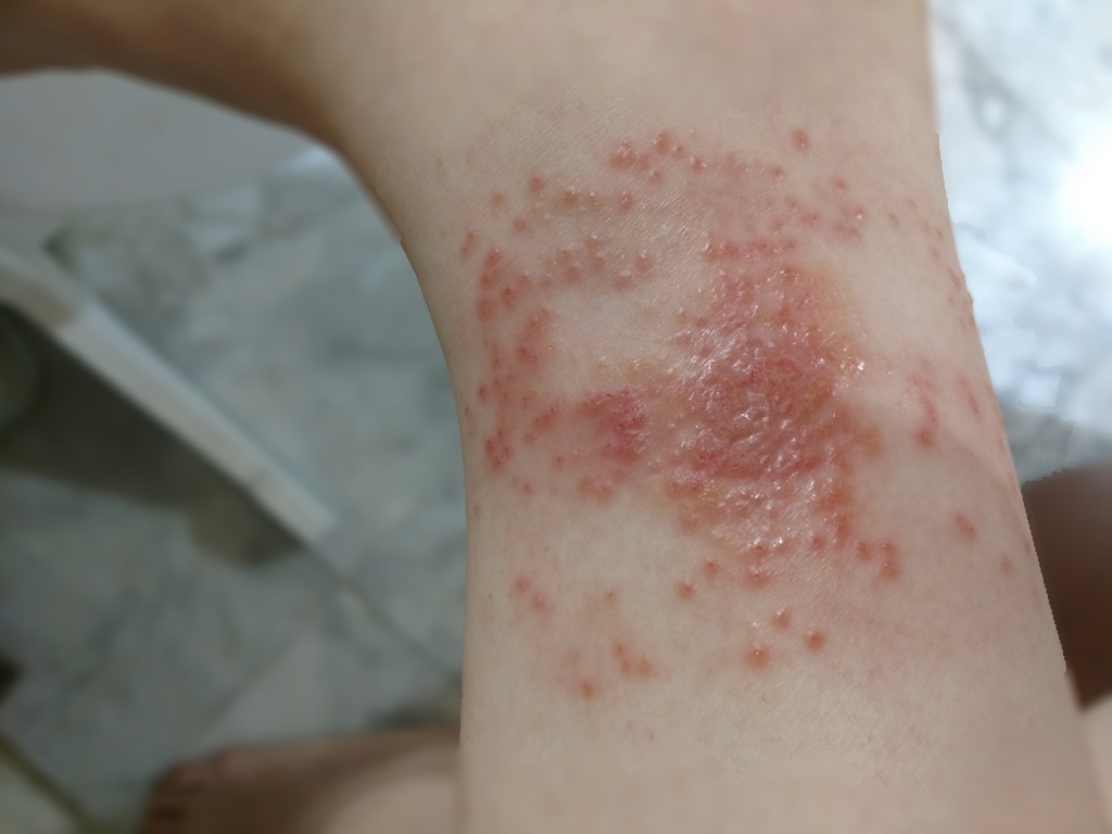 เราท้องได้ 5 เดือนคะ และมีอาการคันที่ขา เป็นวงสัก 1.5 cm มีหนองออก เลยซื้อสก็อตเทปปิดแผลแบบดูดหนองออก แปะเช้า พอตอนเย็นแกะออก กลายเป็นมีผื่นขึ้นตามแนวรอยกาวของสก็อตเทป TT (รูปประกอบแย่หน่อยนะคะ)