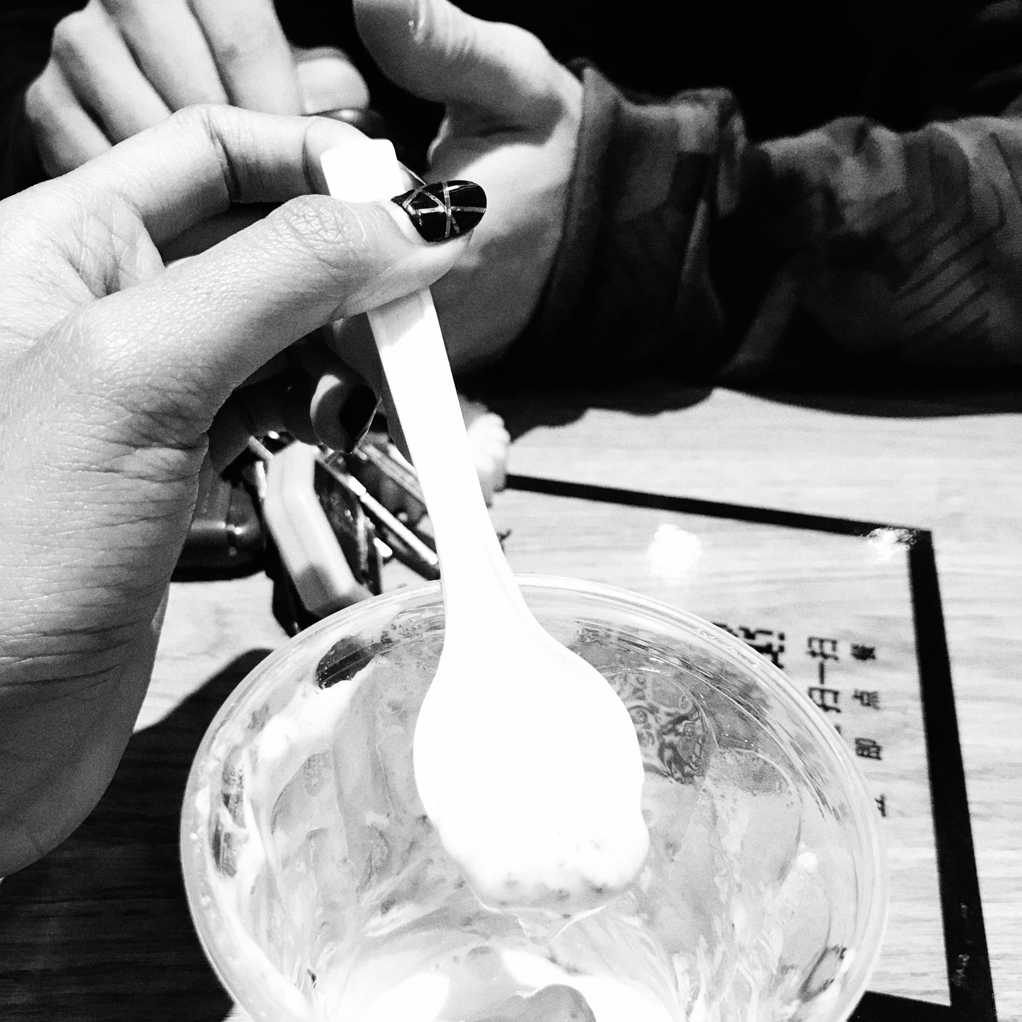 (นั่งกินไอติมอยู่ในร้าน, เบบี้ก้นั่งดูเรากิน.. he ยิ้มอ่อนๆ คือเรากินคนเดียวแล้วเค้าไม่กิน..)