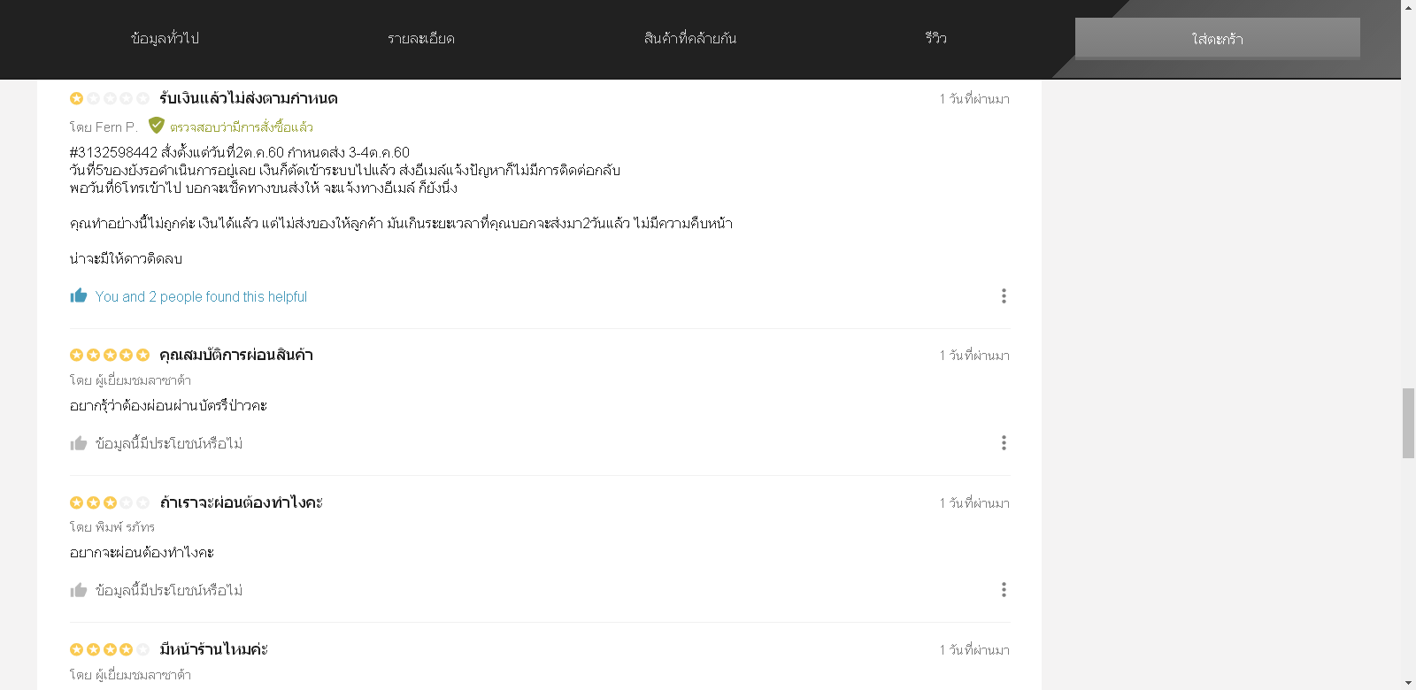 ผมสั่งสินค้าไปโดยผ่านบัตรเครดิต สินค้าจำหน่ายโดย Lazada ตามรายการนี้