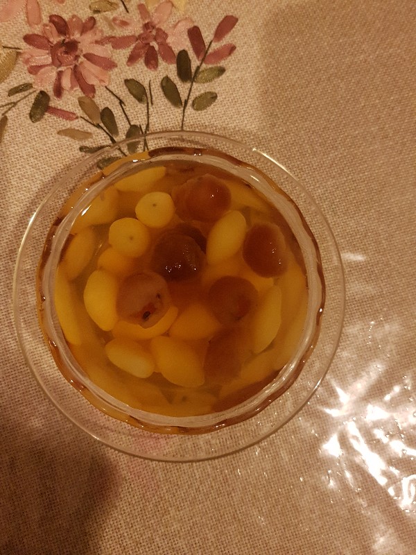 ปกติต้มแปะก้วยจะออกขมนิดหน่อย ถ้าเติมลำใยอบแห้งจะได้รสหอมเลยล่ะค่ะ