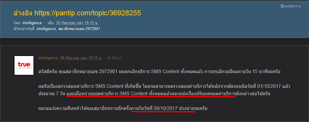 True ทำแบบนี้ทำไมครับยัดเยียดSMS บ้าบอแบบนี้