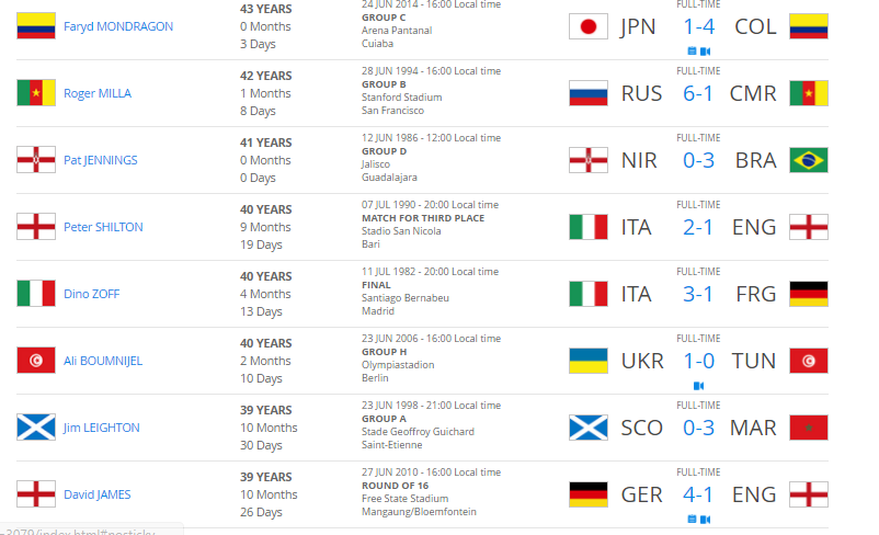 จากสถิติเดิมของฟุตบอลโลก สูงสุดที่ 43 ปี