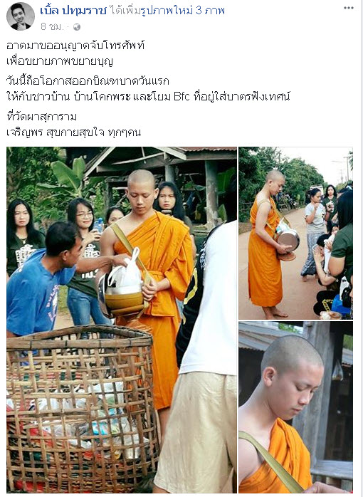 เพราะการกดเล่นโทรศัพท์อาจมีมากกกว่าพระทั่วไป เพราะพระที่เป็นศิลปินจะมีแฟนคลับเป็นของตัวเองแบบนี้ คือจริงๆ ไม่รู้ว่าในทางธรรมทำได้มากน้อยแค่ไหน หรือแค่เผยแพร่บุญก็สามารถทำได้ หรือว่าจริงๆ แล้วการเป็นพระก็ไม่สมควรทำบ่อยๆ อาจดูบ้างเป็นบางคราวงี้ได้ คือช่วงเวลาที่ผมบวชไม่ค่อยได้เล่นโทรศัพท์ดูพวกเฟซบุ๊คบ่อยมากอะไรแบบนี้ก็เลยไม่รู้