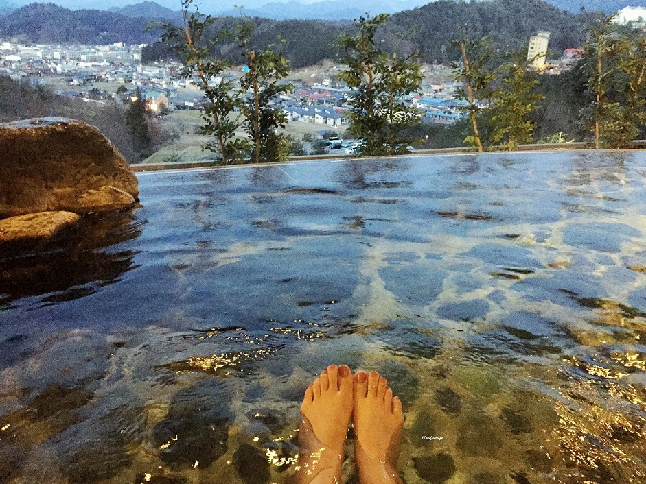 ออนเซนที่ รร นี้มีออนเซนทั้ง indoor เเละ outdoor ซึ่งกมลชอบแช่แบบ outdoor เคยเเช่ทริปก่อนหน้านี้ติดใจ คือมันดี มันสดชื่นมาก หายเหนื่อย เเละที่ รร นี้มีวิวเมืองให้ดูด้วย