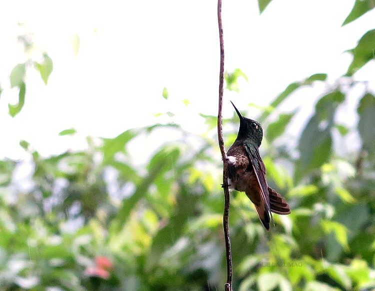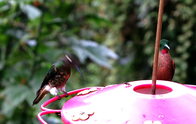 ด้านหลังเป็นป่า มีฮัมมิงเบิร์ดบินว่อน
