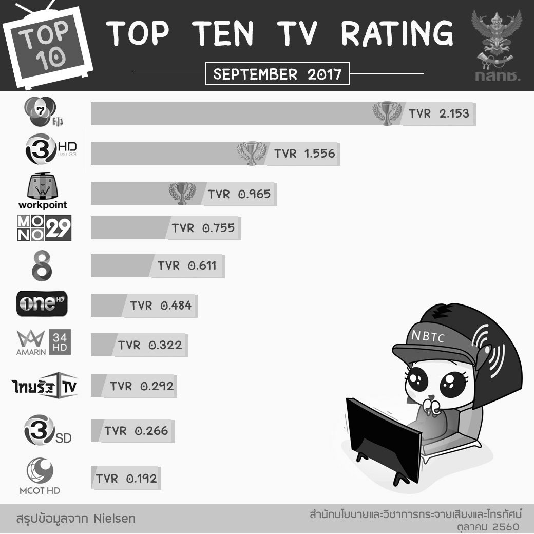 สรุปเรตติ้งประจำเดือน กันยายน ของทีวีดิจิตอล จาก กสทช จ้า