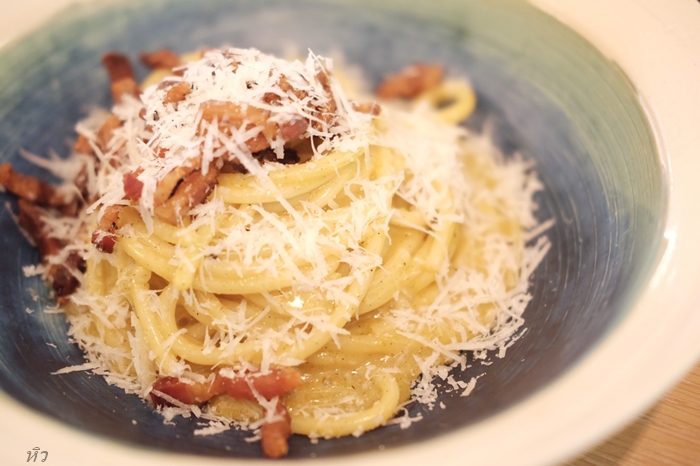 คาโบน่าร่าแบบดั้งเดิม จะไม่ใส่ครีม เส้นจะรอนานหน่อย จานนี้ออกเค็มครับ ราคา 300+
