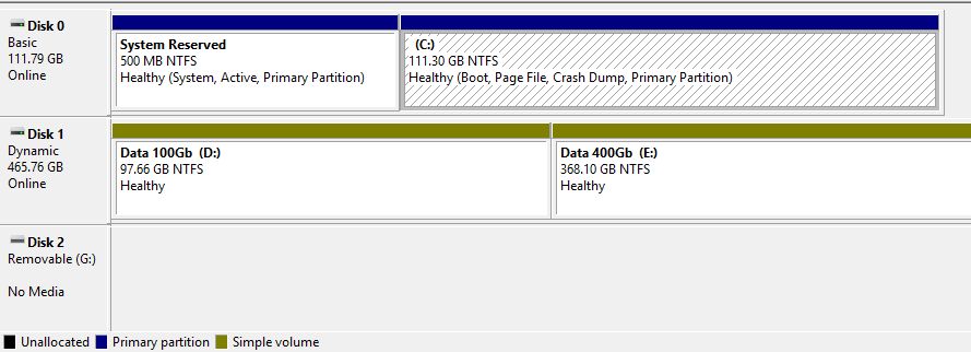 ผมมีความจำเป็นต้องใช้ Linux สลับกับ Windows ครับ แล้วผมแบ่งพาร์ทิชั่นออกมาเพื่อลง Linux 100 GB ตอนก่อนแบ่งพาร์ทิชั่นมันเป็น Primary Volume แต่พอผมทำการแบ่งแล้ว มันเปลี่ยนเป็น Simple Volume ทุกไดรฟ์เลย