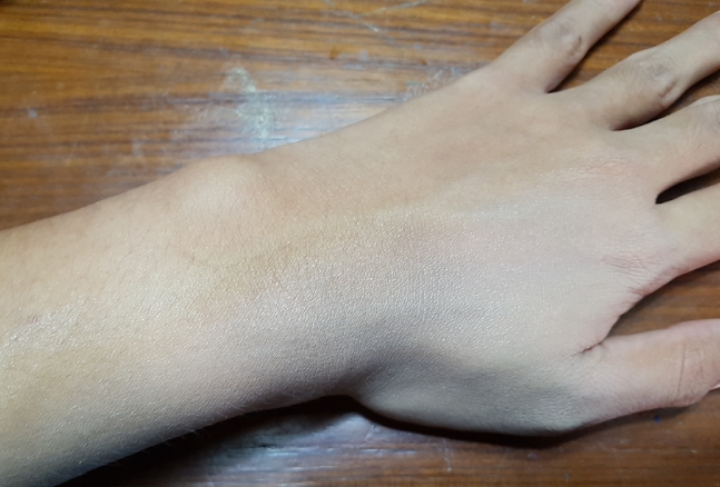 เออ พอนวดๆไปมันก็กลืนจริงๆ แต่ยังขาวกว่าผิวจริงนิดนึง แต่เราหน้าขาวกว่าแขนอยู่แล้ว