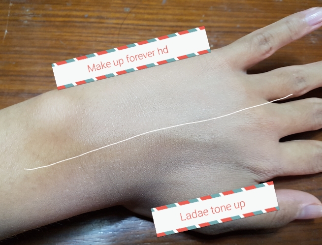เลยลองเอารองพื้นตัวเองมาเทียบ make up forever hd ด้านบน