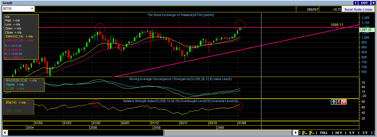 ตามภาพ SET50 กราฟเดือนชนแนวต้านที่ 1,100 ซึ่งเป็นแนวต้านใหญ่แล้วครับ