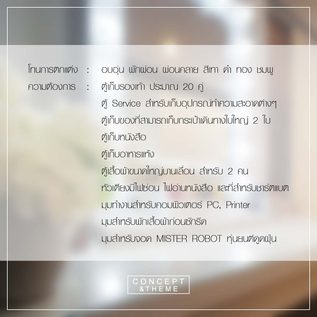 โดยเจ้าของห้องมีความต้องการในรีโนเวท และตกแต่งภายในคือ