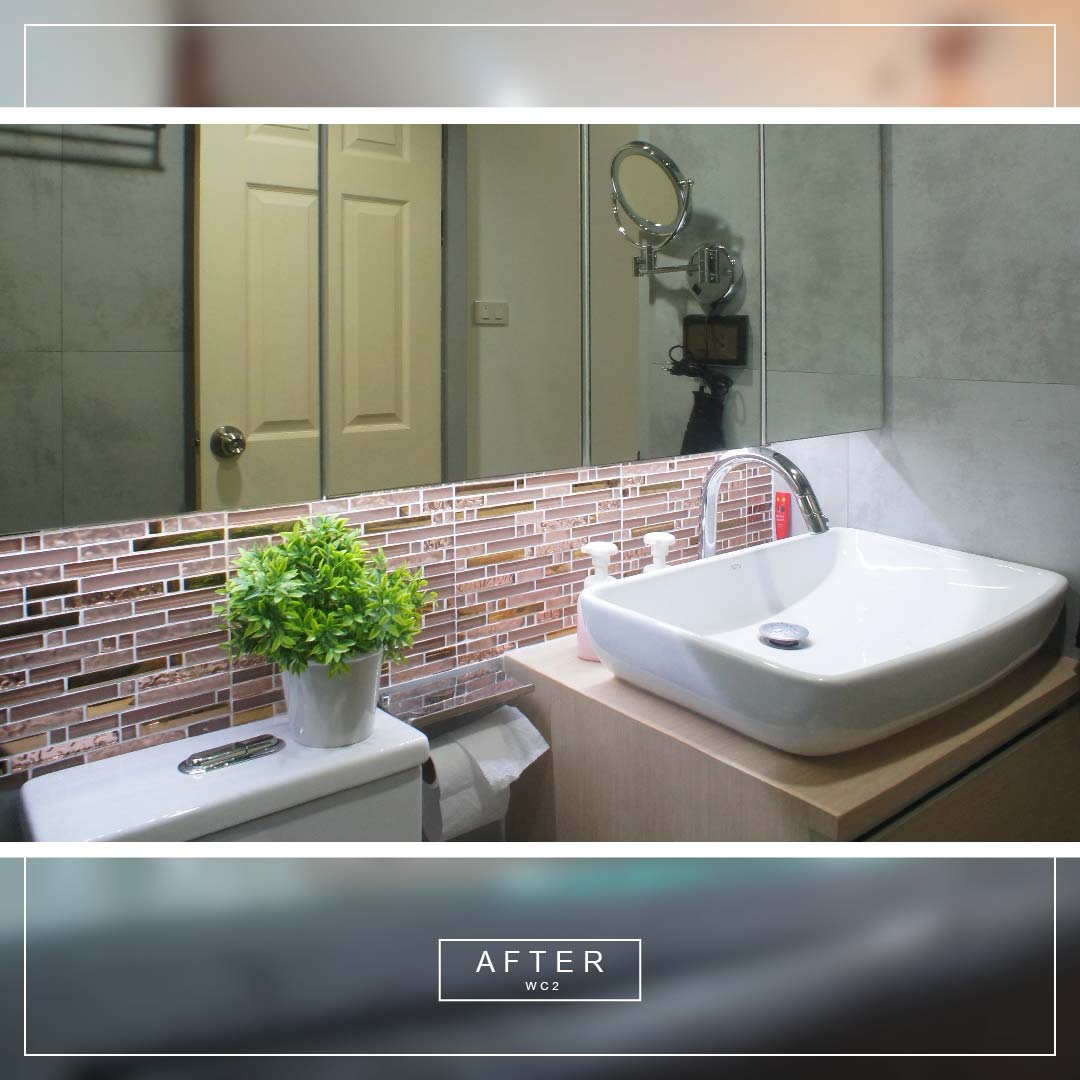 สำหรับห้องน้ำต้องการปูกระเบื้องใหม่หมด เปลี่ยนสุขภัณฑ์ใหม่ทั้งหมด เพิ่มตู้สำหรับเก็บของใช้เข้าไปทั้ง 2 ห้อง