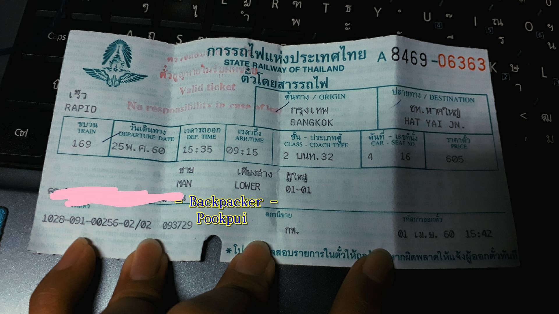 อันนี้คือตั๋วรถไฟที่เราจอง จากกรุงเทพถึงหาดใหญ่ ออกเวลา 15:35 ไปถึงอีกวันนึง เวลา09:15 (แต่ไปถึงจริงๆเลทจ้าา 5555555)