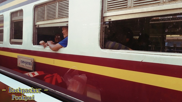 คนเริ่มมากันบวกกับถึงเวลา ก็ออกเดินทาง พอรถไฟเริ่มออกก็จะมีทั้งขนมทั้งอาหารมาเดินขายแทบตลอดเวลา