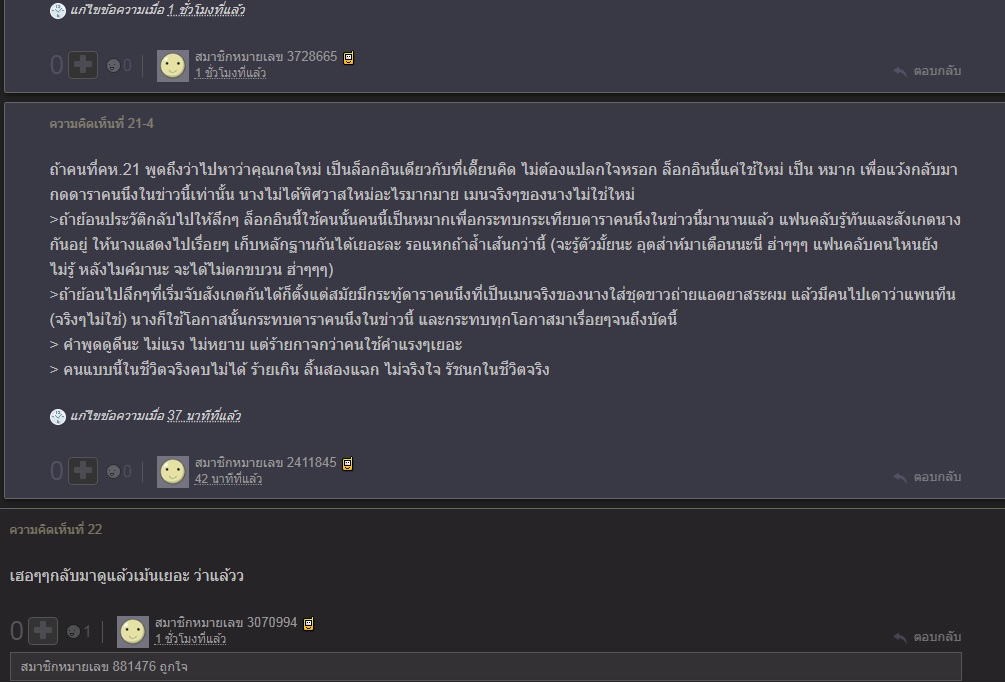 (เราเป็นคนเดียวในกระทู้ที่ตอบโต้ล๊อกอินนึงไปแบบนั้น จึงค่อนข้างชัดเจนว่า เขาหมายถึงเราค่ะ)