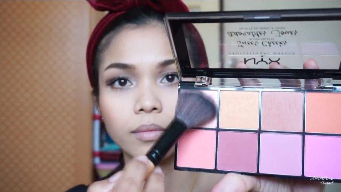 ปัดแก้มด้วยสีน้ำตาลอมส้มนะคะ